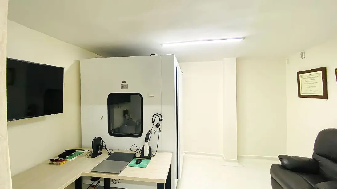 Evalúa la audición y el funcionamiento del oído, la audiometría tonal, de campo libre y la de ganancia funcional permitiendo analizar la intensidad y frecuencia del tinnitus o zumbidos.